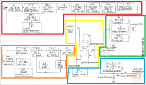 TR1 = Transistor 1: FM aerial radio frequency (RF) preamplifier, of the whole UKW (Ultra-short-wave) band